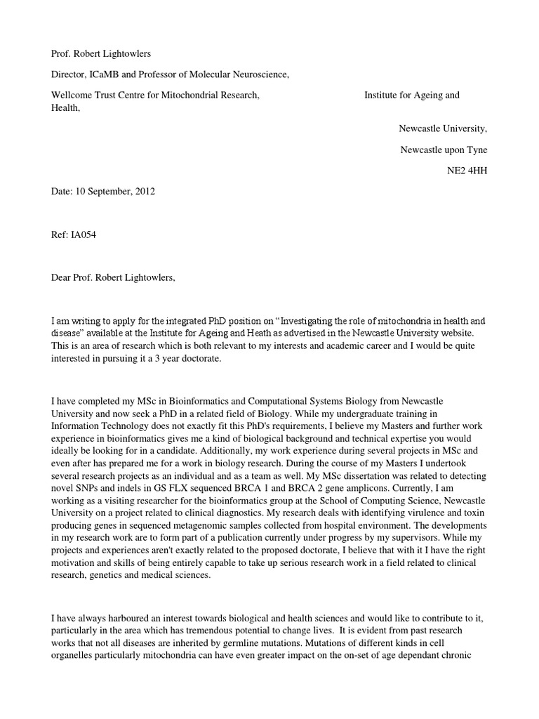 I am applying for a phd, to which i need to send a. · proofread and spell check! Back to cover letter samples. Your phd cover letter should include your personal details, the position you're applying for, your motivation for applying, what you know about the project, what relevant experience you have and. · the cover letter is a writing sample.